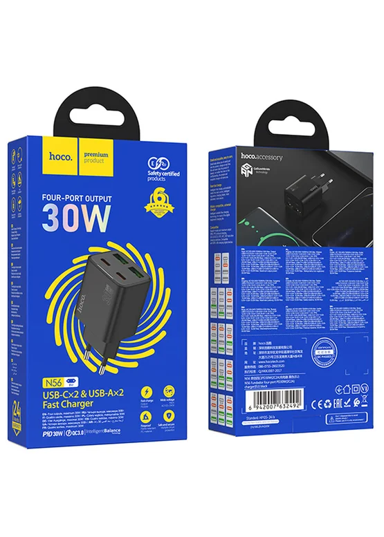 СЗУ Hoco N56 Fundador PD30W four-port (2USB-A/2C) Black