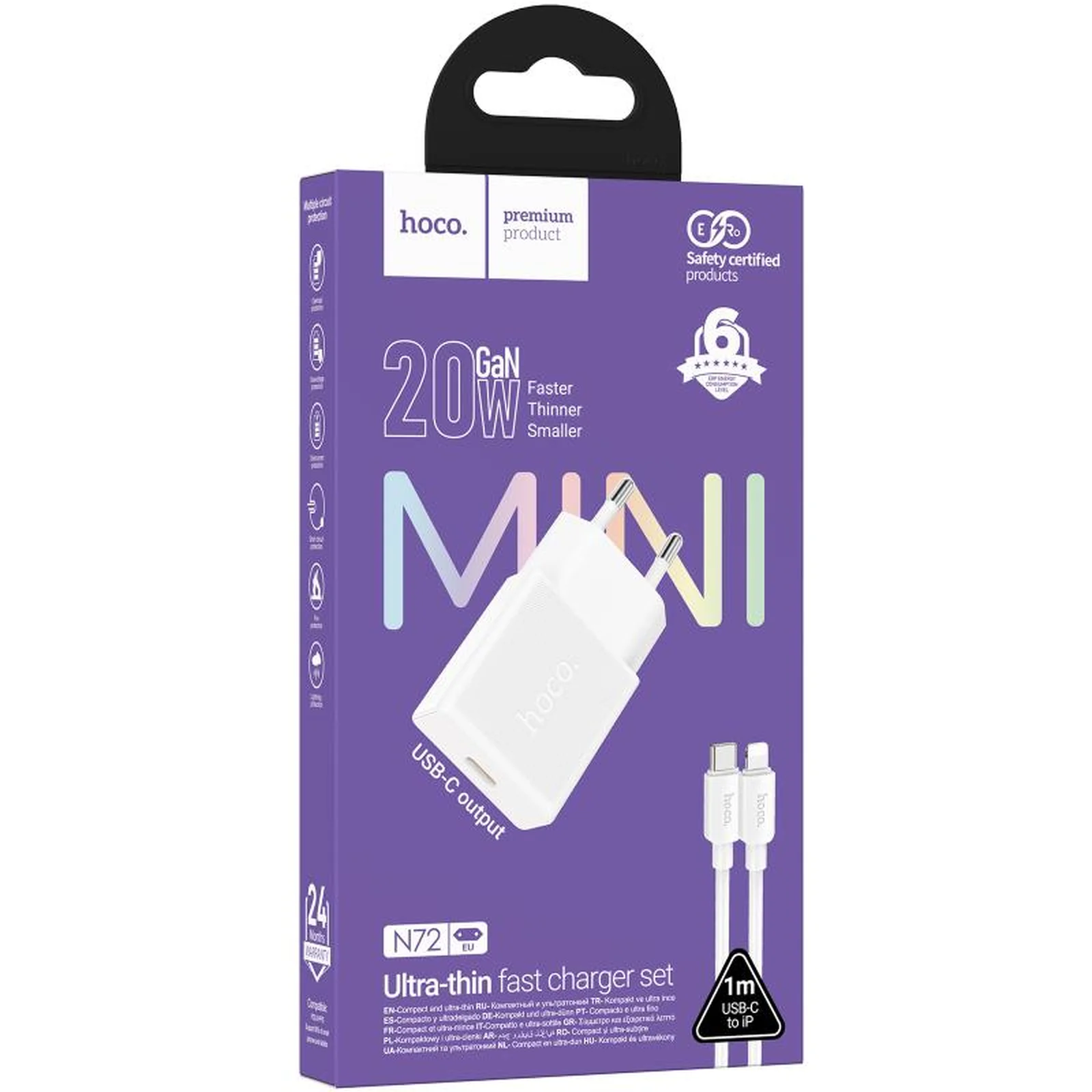 СЗУ Hoco N72 Speed ultra-thin PD20W (1USB-C) + кабель Type-C to Lightning White