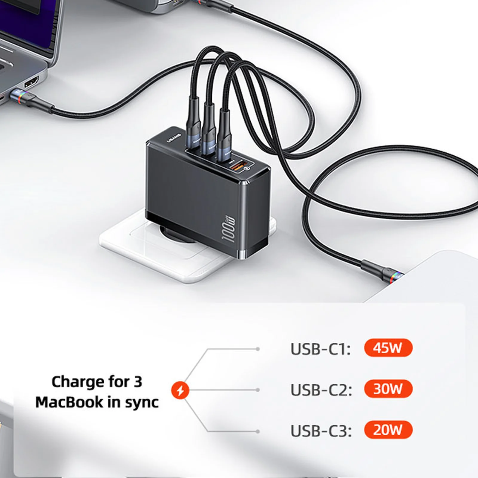 СЗУ Usams US-CC163 T50 100W 4 Ports ACCC GaN Fast Charger Black