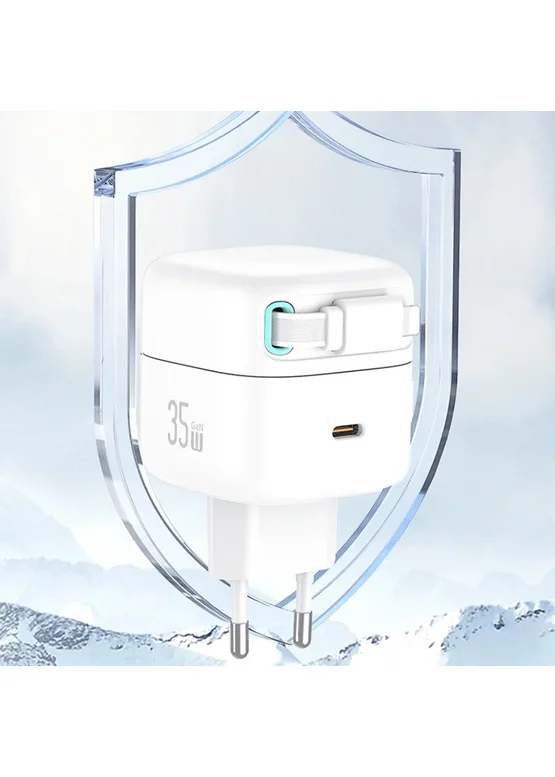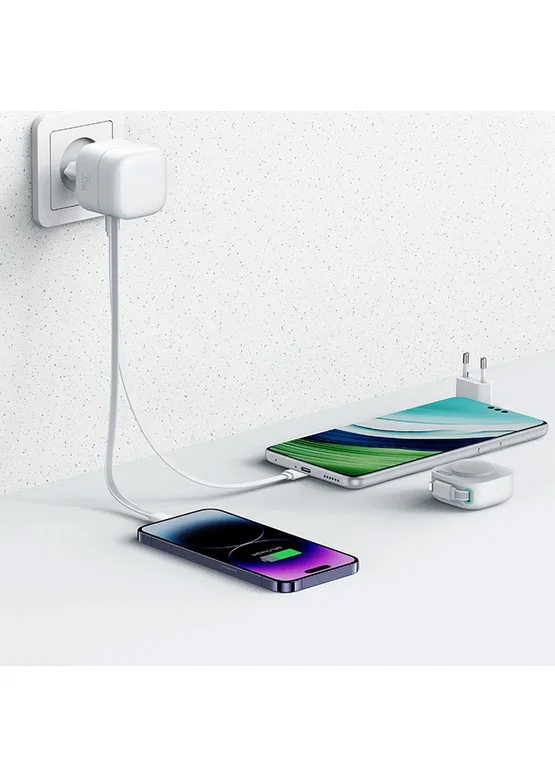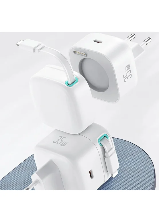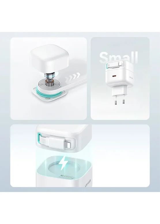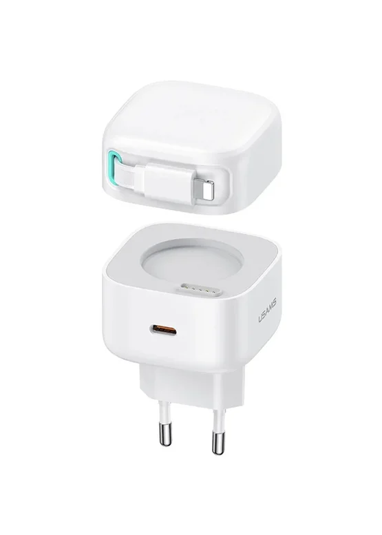 СЗУ Usams US-CC209 GaN With Lightning Magnetic Retractable Cable Module XMF Ser. 35W (2USB-C) White