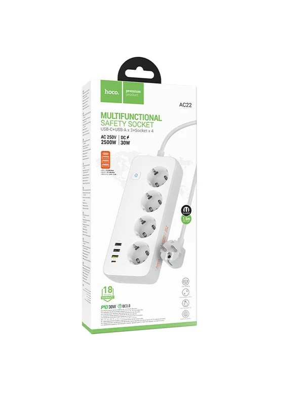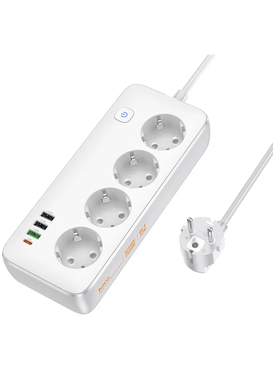 Подовжувач Hoco AC22 Sunlight (PD30W/1C/3A/4xSocket) (1.5m) White