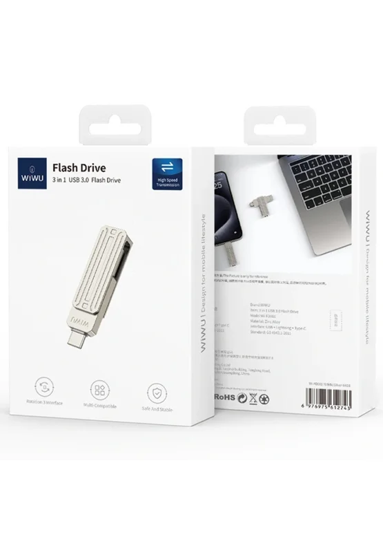 Флеш-драйв USB 3.0 Flash Drive WIWU Wi-FD001 3 in 1 32GB Silver