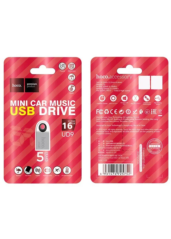 Флеш накопичувач USB 2.0 Hoco UD9 16GB Срібний